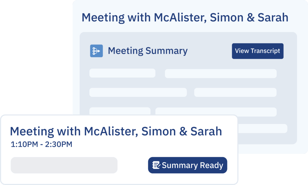 Be fully present with clients while AI captures every detail, generates summaries, and turns conversations into action.